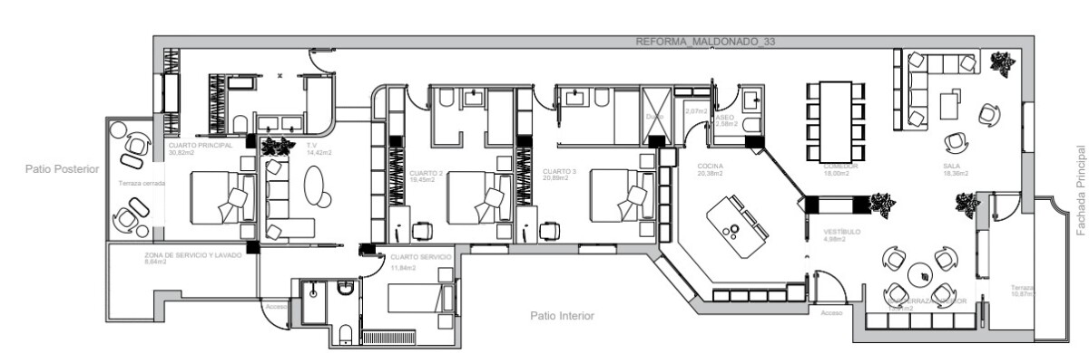 El piso, actualmente en proceso de reforma integral con calidades prime, contará con tres amplias habitaciones, todas ellas con baño en suite, además de un aseo de cortesía.