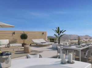 Apartamento de 96 m2 de 2 dormitorios, con 2 baños, terraza de 36 m2, solárium de 76 m2, plaza de garaje y trastero.