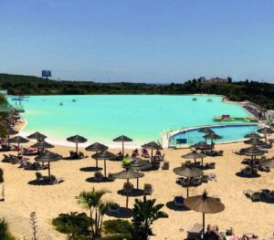 Disfruta de la laguna cristalina en la que se practican todo tipo de deportes. con playa artificial y restaurante