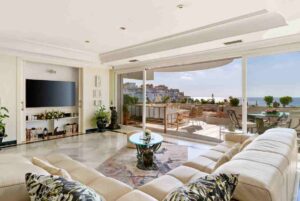 Este excepcional e impresionante ático triplex está situado justo en la playa en el emblemático edificio Grey D'Albion, cerca del famoso puerto deportivo de Marbella Puerto Banús en Nueva Andalucía. Esta lujosa propiedad ocupa los tres primeros pisos del edificio y ofrece increíbles vistas panorámicas al Mar Mediterráneo , Gibraltar y África, así como el glamuroso puerto y las montañas de Marbella. El lujoso complejo residencial Grey D'Albión con su espectacular entrada ofrece seguridad y vigilancia las 24 horas,