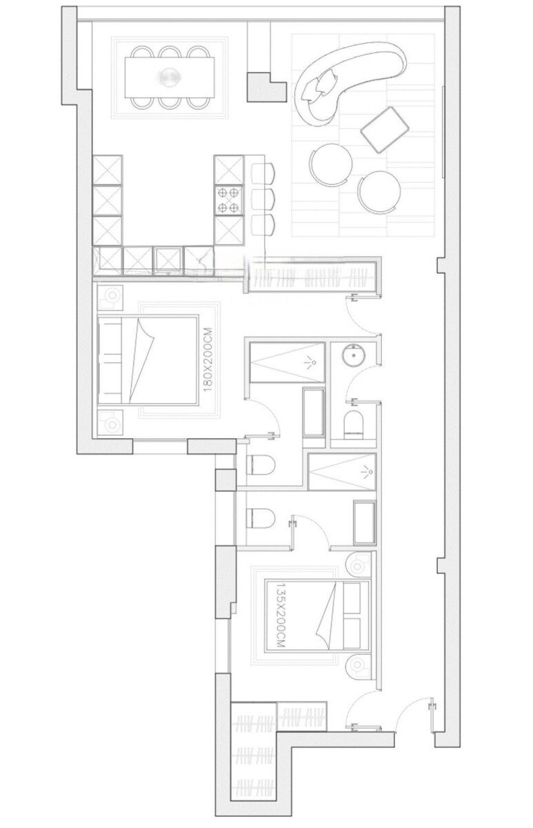 La vivienda contará con dos dormitorios en suite, ambos equipados con armarios empotrados y baño privado, garantizando privacidad y comodidad. Además, dispondrá de un aseo de cortesía para mayor funcionalidad. Cada detalle de la reforma ha sido cuidadosamente seleccionado para ofrecer un hogar elegante, práctico y acogedor.