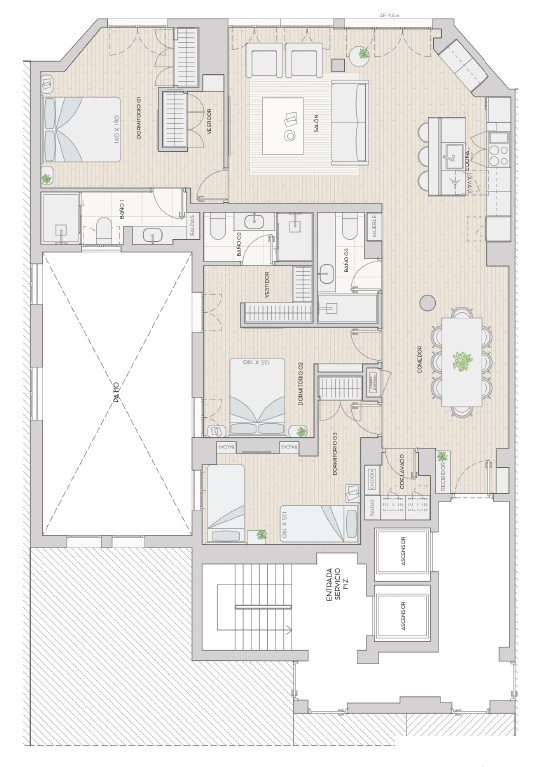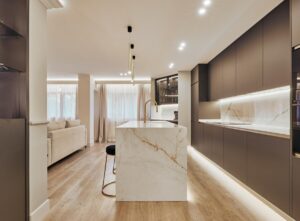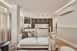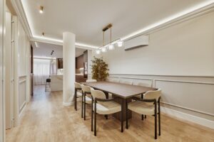 La propiedad ha sido completamente reformada con un enfoque elegante y funcional, ofreciendo una distribución equilibrada y espacios amplios pensados para el confort diario. El salón-comedor, luminoso y bien proporcionado, se convierte en el eje principal de la vivienda, generando una atmósfera acogedora y sofisticada.