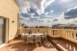 La propiedad ofrece una distribución elegante y funcional, con tres amplias habitaciones, tres baños completos y un aseo adicional, además de una práctica zona de lavandería. Destacan sus dos terrazas privadas, ideales para disfrutar del aire libre en un entorno urbano privilegiado.