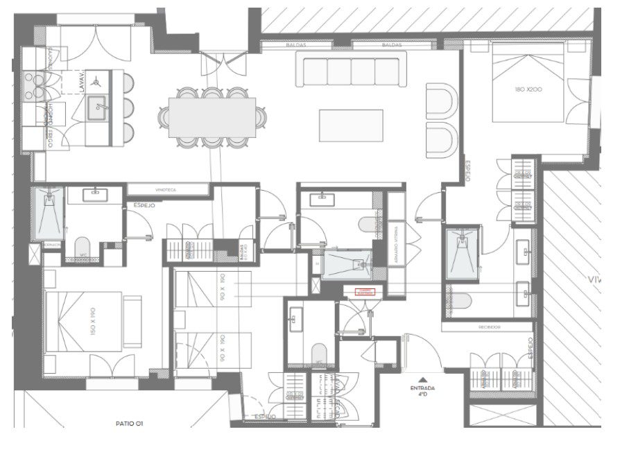 Vivienda situada en la calle Marqués del Riscal, en el prestigioso barrio de Almagro, dentro del distrito Chamberí de Madrid. Ubicada en una cuarta planta de un edificio de 1976 con ascensor y portería, la propiedad se sitúa en el interior a patio de manzana, ofreciendo un entorno más tranquilo en una de las zonas más elegantes y residenciales de la capital.